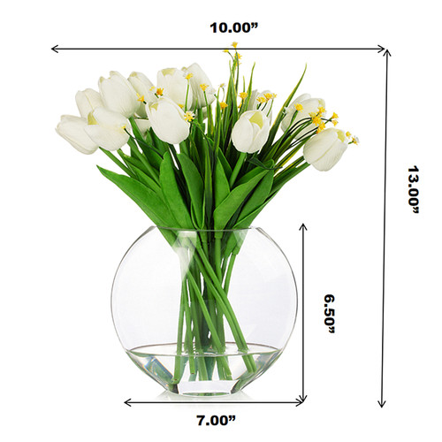 - Package Include: 15 Heads Tulip Flower Arrangement in Clear Glass Vase With Faux Water