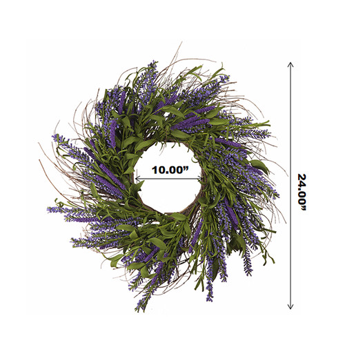- HIGH QUALITY WREATH: This artificial spring wreath is made of premium plastic. The base is durable natural grapevine full of colorful lavender flowers. The entirely realistic wreath has bright color and vibrant looking.