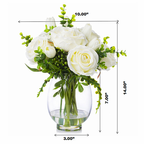 - Package Include: Mixed Tulip and Rose Flower Arrangement in Clear Glass Vase With Faux Water